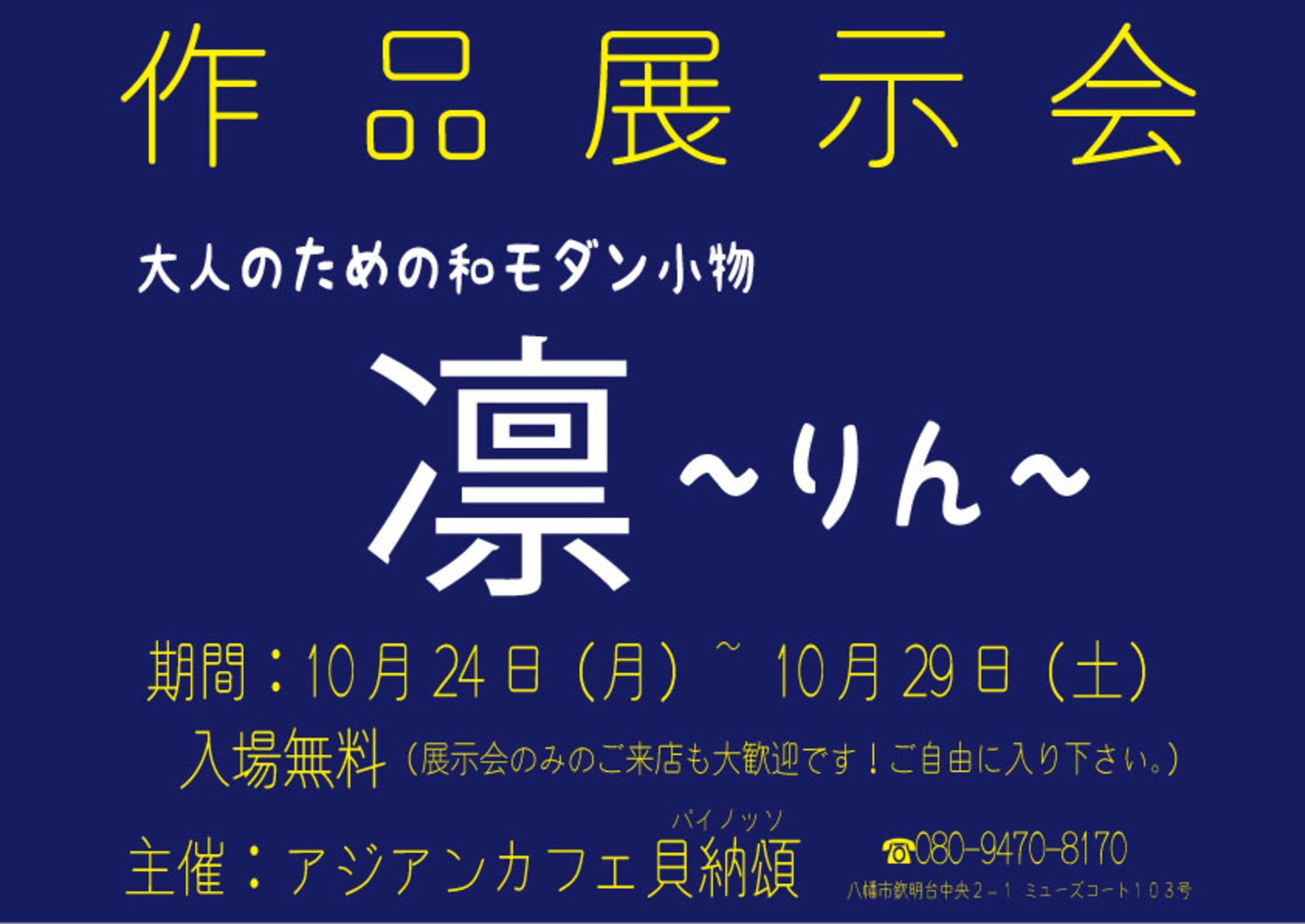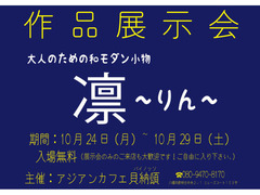 大人のための和モダン小物"凛"さんの作品展示会を開催致します。 展示会のみのご来店も大歓迎です! 着物はもちろん、洋服にも合う和モダン小物が沢山展示されます。 是非、お気軽にお立ち寄り下さいませ♪