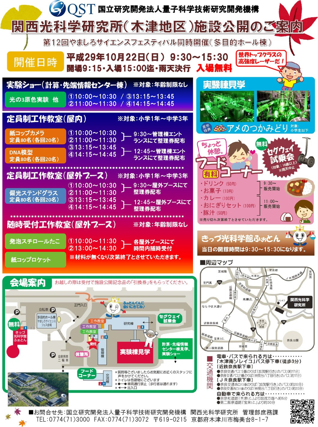 関西光科学研究所(木津地区)施設公開(10/22)のご案内